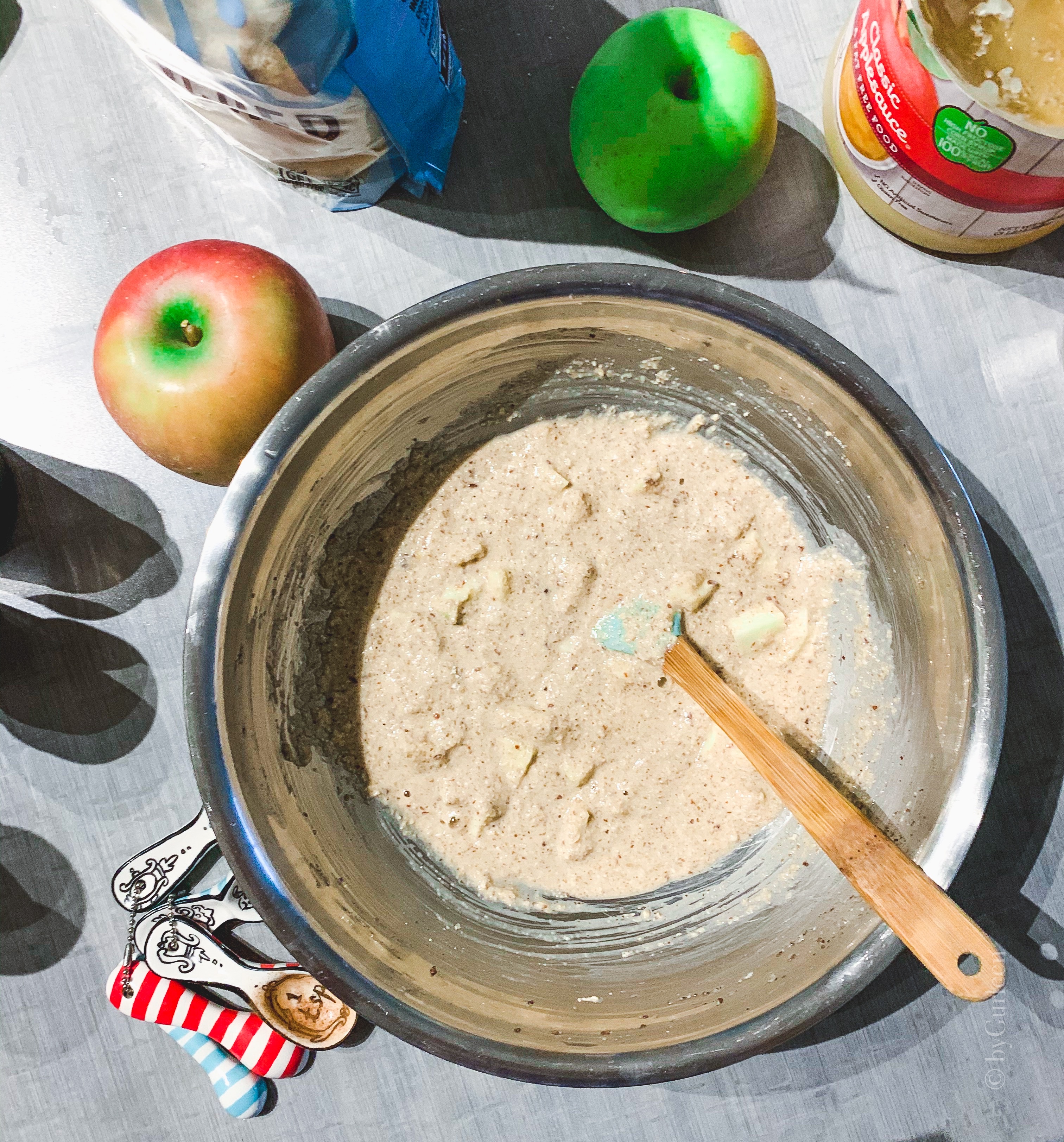- Mix the dry ingredients to the wet ingredients. 6.. Fold in the diced Granny Smith Apples.