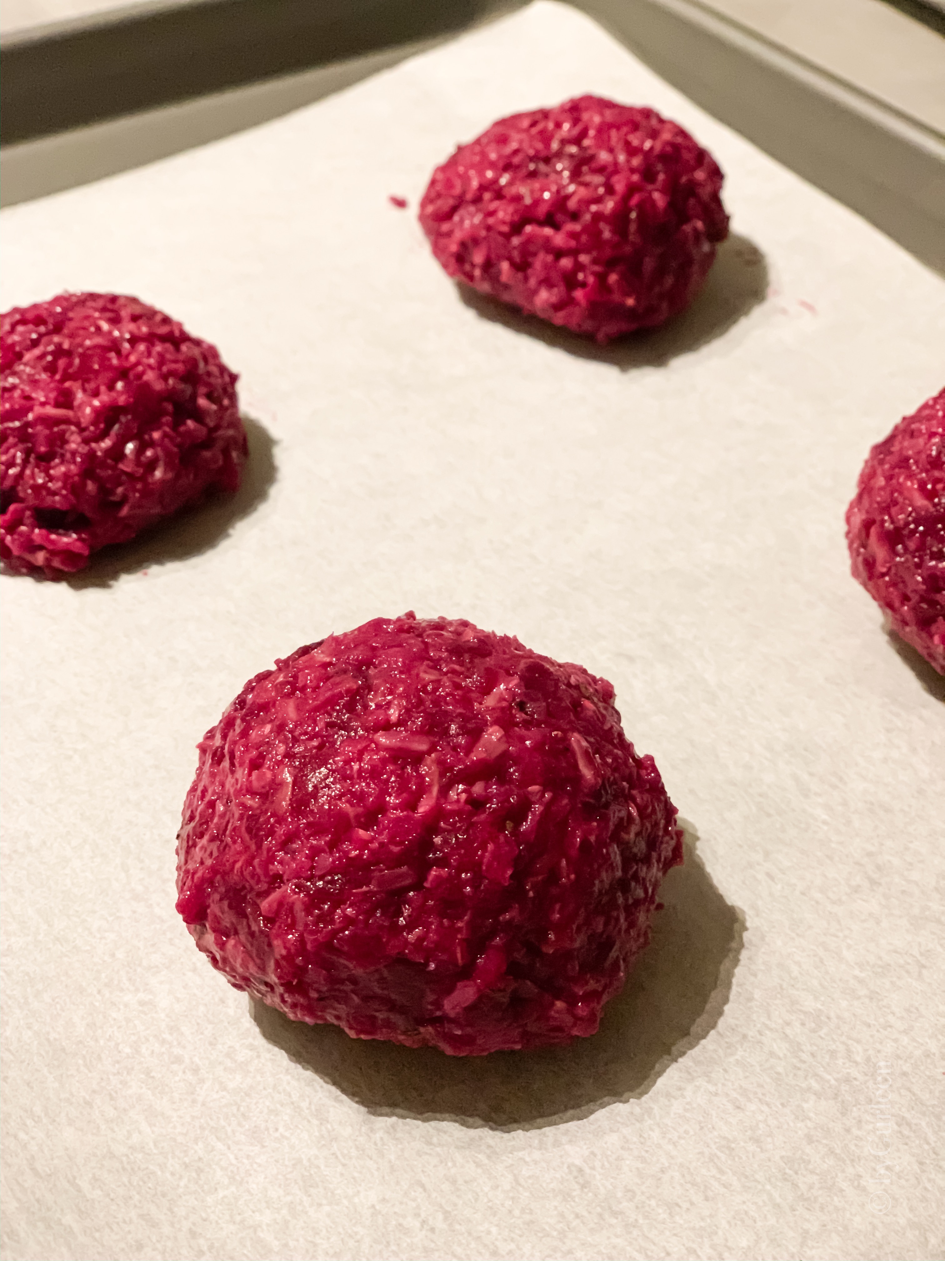 Vegan Beet Burgers! Quick and easy recipe for a hearty veggie burger with a perfect bite. The burger is egg-free, dairy-free, vegetarian. This recipe was inspired by one of my favorite vegan burgers at Northstar Cafe.